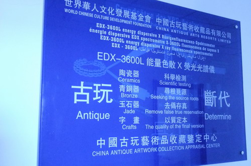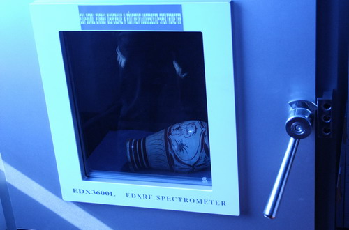 据介绍,“EDX-3600L能量色散X荧光能谱仪”作为世界上最先进的古玩检测仪器,拥有德国硅漂移探测器、牛津仪器X光管,分析范围为1ppm-99.9%,准确率可达100%。此实验仪器是专门为古陶瓷、青铜器、贵金属、矿物标本等特殊定造,能够准确、快速的对这类收藏品辨别真伪、确定窑口、判定年代。它是目前世界上同类仪器中容量最大的一种,有效空间为65×65×55(cm),被检藏品只需在这个范围内便无须取样, 即可精确的分析其胎、釉的化学成分,实现真正的无损检测。