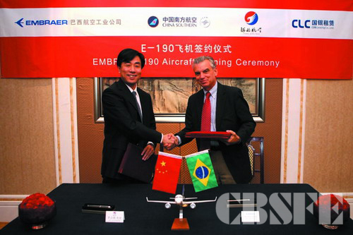 (河北航空有限公司向巴西航空工业公司定购的E-190喷气飞机签约仪式现场)